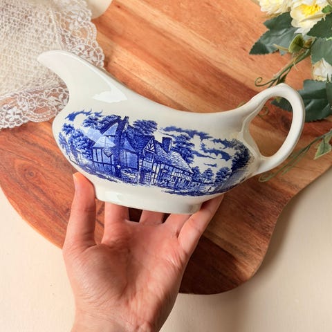 Nydelig vintage engelsk sausenebb fra Barratt's of Staffordshire. Dekoren heter Orient vase og sausenebbet er merket med en B som indikerer at det er produsert under the Wartime Concentration Scheme, m.a.o. i perioden 1942-52. Det ligger mer info om dette i bildene 😊