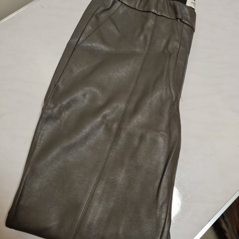 Brun imitert skinn bukse med strikk i livet. Den er ankel-lengde. Nydelig brunfarge.