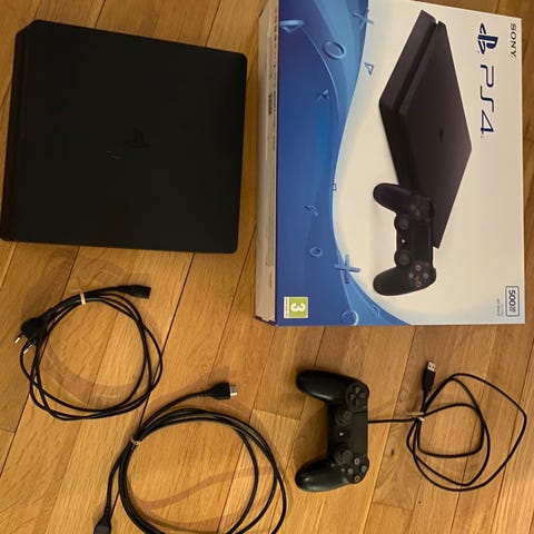 Selger en PlayStation 4 Slim med original DualShock 4-kontroller og 2 spill. Konsollen fungerer som den skal og er klar til bruk. Perfekt for både barn, ungdom og voksne.