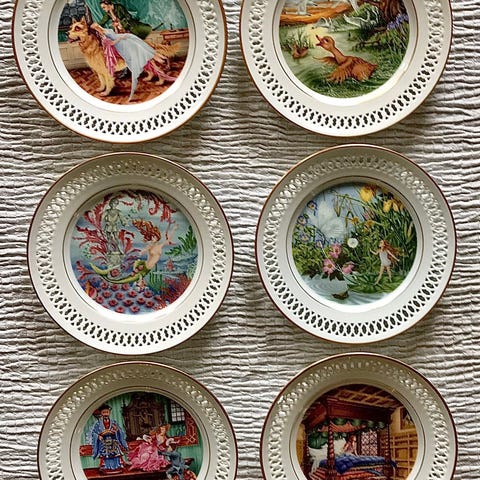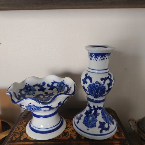 Sett med to runde dekorative fat, sannsynligvis fra Jingdezhen fra 1950-tallen. Fatene har flerfarget design med blomster og landskapsmotiver, hovedsakelig i oransje, hvitt og rødt. Fatene kan brukes til dekorasjon eller som serveringsfat. Se gjerne på profilen min for flere liknende annonser!