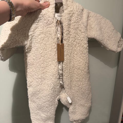 Selger en pent brukt baby heldress i størrelse 62. Laget av bamboo og bomullskvalitet for komfort. Kjøpt fra Barnas hus, brukt kun 1-2 ganger, ingen bruksmerker.