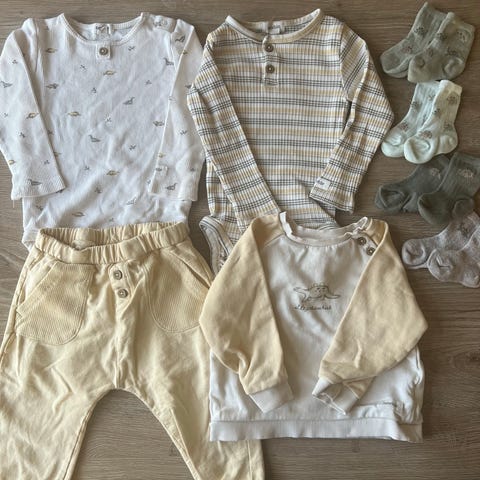 Selger barneklær og leker i str. 9–12 mnd, veldig god stand.