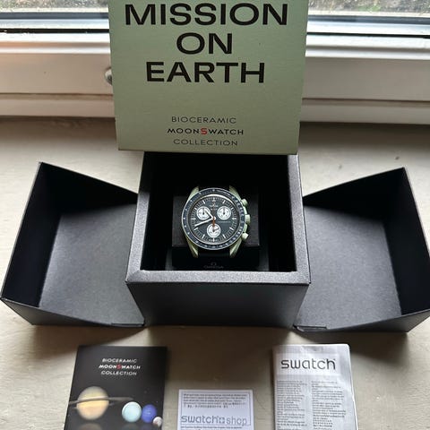 Helt ny Omega x Swatch Mission to Saturn. Kjøpt i Sevilla i 2023 og er aldri blitt brukt. Klokken kommer med alt av originalemballasje og papirer.