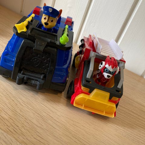 Paw Patrol lekebil i stor størrelse. Kjører bortover selv når en liten knapp trykkes inn.