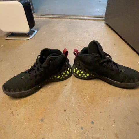 Jordan selges pga oppgradering til nyere Jordan. Skoene har en kombinasjon av lær og tekstilmateriale, med en høy ankelstøtte og gummisåle for godt grep. Designet for herre, egnet for basketball og fritidsbruk.