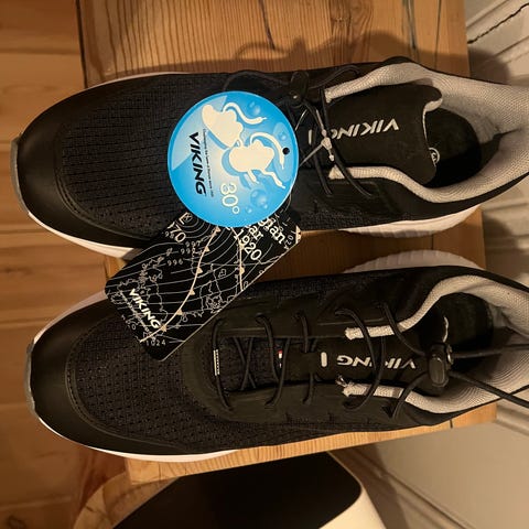 Skoene anser jeg som ubrukte, da jeg kun har prøvd dem 1/2 times tid. Selger dem grunnet feil størrelse.