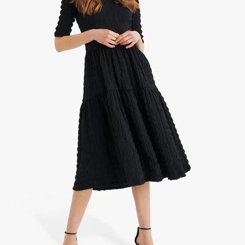 InWear Hverdagskjole i svart farge, størrelse M. Kjolen har teksturert materiale og er designet for kvinner. Den har korte ermer og en løs passform som gir komfort til hverdagsbruk.