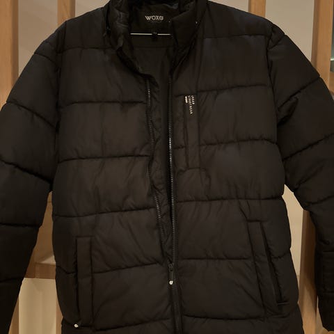 Lindex jakke i størrelse 146 for jente. Jakken er svart og har hette. Boblejakke som tåler yr men ikke regn.God og varm med fin shine i tøyet