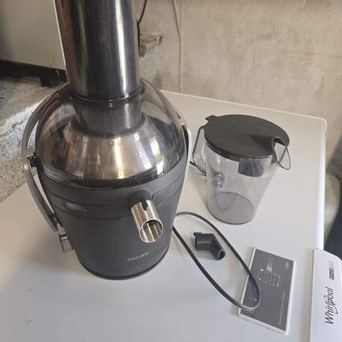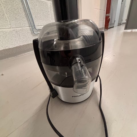 Philips Avance Collection HR1921 juicemaskin i rustfritt stål og svart plast selges for 1000kr. Inkluderer en stor mateåpning for hele frukter og grønnsaker, samt en juicebeholder. Designet for effektiv juiceutvinning og enkel rengjøring.