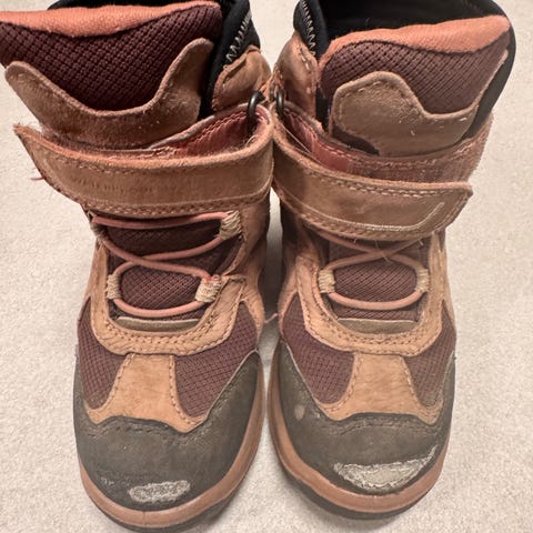ECCO barn vintersko i størrelse 36 for jenter. Skoene har borrelåslukking og er laget i en kombinasjon av materialer med en gummisåle for godt grep. Brukt til vinterbruk med isolerte såler for varme. Det er synlige tegn på slitasje, spesielt på hælen på hø sko og foran på ve sko. Litt slutt på sålene.