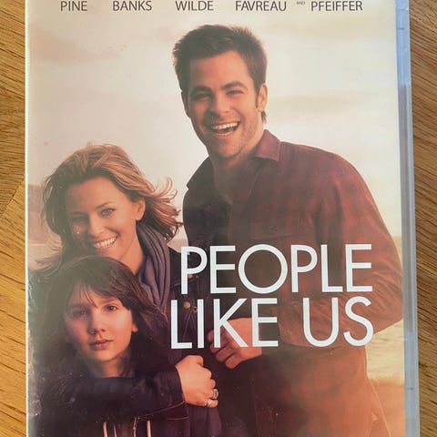 DVD film titled People Like Us. Cover features images of actors including Chris Pine, Elizabeth Banks, Olivia Wilde, Michelle Pfeiffer. The product is a movie DVD suitable for general audiences.