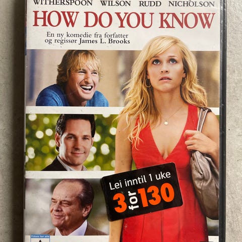 DVD-utgave av filmen How Do You Know, en komedie regissert av James L. Brooks. Filmen inneholder flere sentrale skuespillere og har en handling som utforsker relasjoner og personlige dilemmaer.