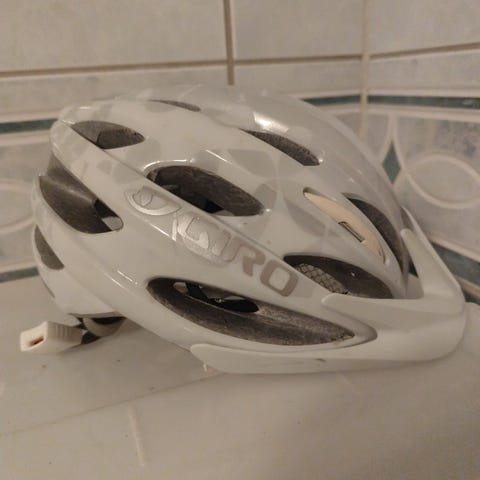 Giro barnesykkelhjelm i blå farge med justerbare stropper og ventilasjonshull. Hjelmen er designet for å gi beskyttelse til barn under sykling og har en komfortabel innside med polstring.
