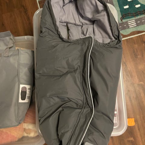 Brukt noen måneder til 2 stk nyfødte. Perfekt å ha i bilstolen dersom man har eldre søsken som skal leveres i barnehage eller lignende. Lun, varm og god.