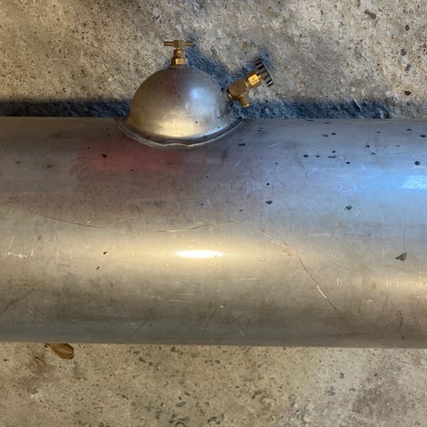 Rustfri drivstofftank dia 24 cm lende 50 cm ca 20 liter selges som fremvist. Bør loddes om rundt påfyllingsstuss