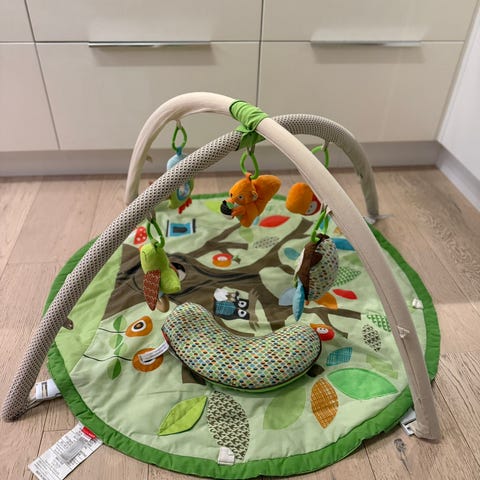 Babygym gis bort! Man kan vaske matten i maskin 😊 Følger med en leke som lager litt lyd, og ringer til å henge opp andre leker! Må hentes’