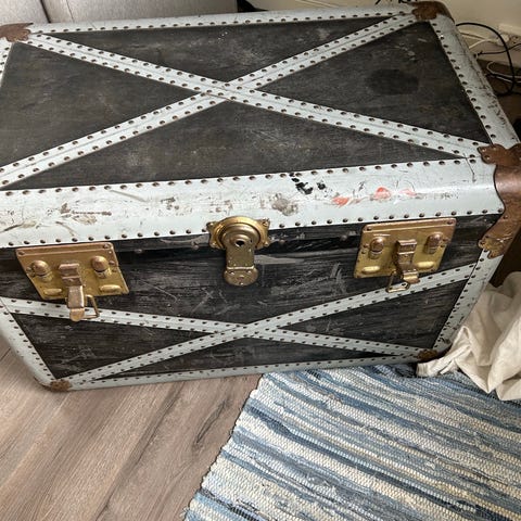 Vintage Amerikakoffert/kiste med innvendig «hylle»