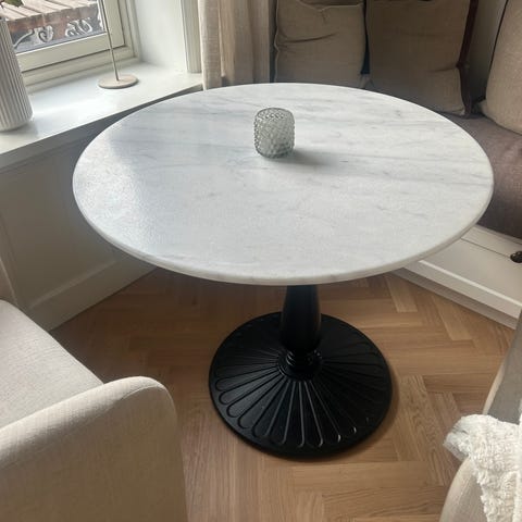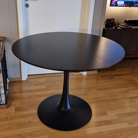 Bordet ble kjøpt nytt av oss, men har fått noen merker på øvre og nedre del etter både barn og robotstøvsuger. Med riktig utstyr kan det enkelt friskes opp og bli så godt som nytt igjen. Selges kun fordi vi trenger et større spisebord.