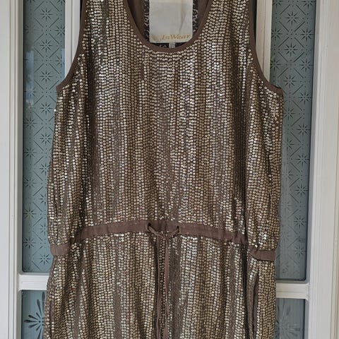 Fin SHEIN jumpsuit i skinnende gull/beige farge. Perfekt til sommer, fest eller en kveld ute.