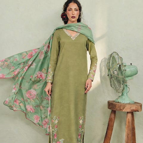 Lang shirt. Suit med broderi. Chiffon dupatta.