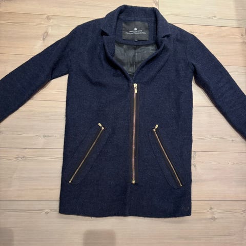 Jakka er litt stor i størrelsen, kan fint passe til liten M også, ca str 36/38. God lengde på ermene.