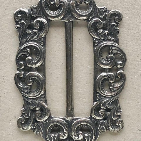D TinnPer støpt tinn, hekte, lengde:6,5cm, høyde:3cm 50kr