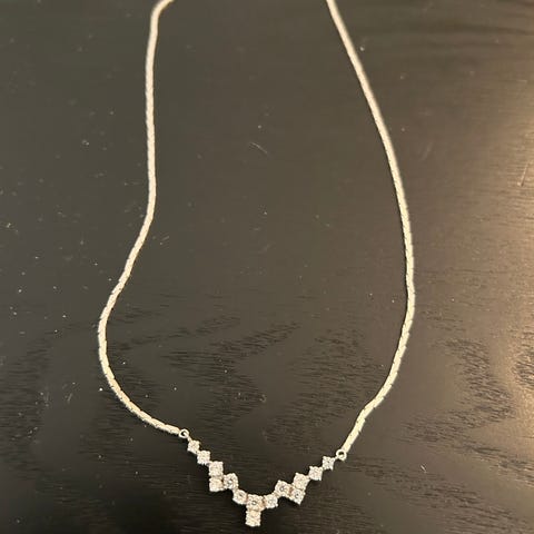 Ca 55 cm langt. Sølvbelagt 925. Sjå bilder for detaljer. Fint brukt. Sølv men har gull farge. 925 stempel på smykket og lås.