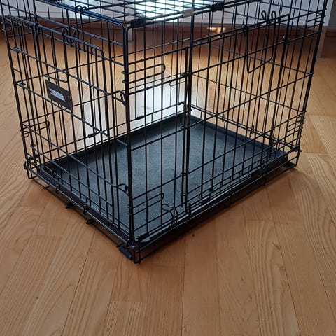 Brukt til en mellomstor hund 23 kg, med god plass i buret.
