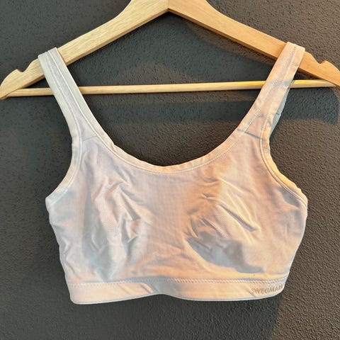 ICANIWILL Sports-BH i grønn farge, størrelse 40. Laget i pustende materiale med nettingdetaljer på ryggen for bedre ventilasjon. Sports-BHen har justerbar lukking bak og polstrede kopper for støtte under trening.