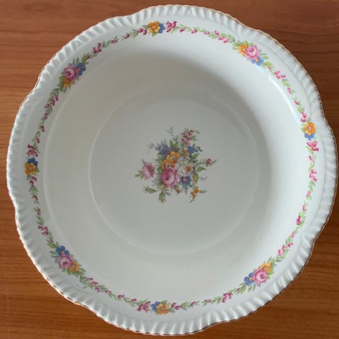 Med elegant blomster motiv og gull kant.