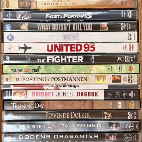 DVDer og Blu-rays selges. Noe nytt i plast, mye pent brukt. Flere sjangre.