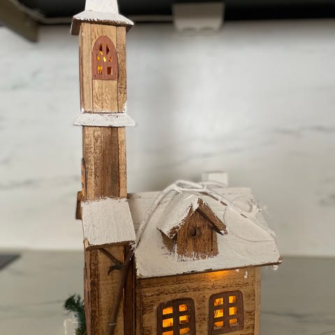 Enkel 4-armet lysestake i porselen. Kristornmotiv på en side, den andre uten motiv. En rød ring på toppen av hver arm. Tidlig 1970-tall. Ø9,5 cm. H21 cm. B27 cm. Merket: "Mideramica - Made in Portugal". Fin stand. Ingen krakkeleringer eller skår