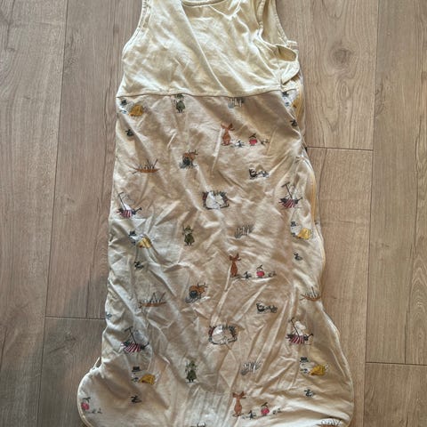Liten klespakke med tre plagg fra Moomin / Mummi. En kjole med body under, og to playsuits i nydelig stoff. Pent brukt og har ingen merker eller skader.
