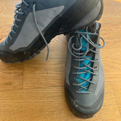Selger et par Arc’teryx Vertex Alpine sko i sort. Disse er svært lite og pent brukt, og fremstår i god stand. Modellen er kjent for å være vanntett, ha Vibram-såle med svært godt grep og generelt høy kvalitet.
