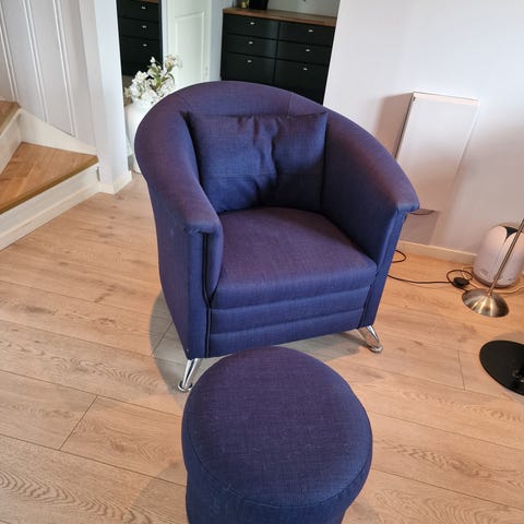 Pen brukt lene stol merke Scapa lilla farge ,ikke noe skade eller flekk ,ikke røyk eller dyr .