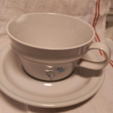 Høyde ca. 8,5 cm. Diameter bunn ca.16 cm.