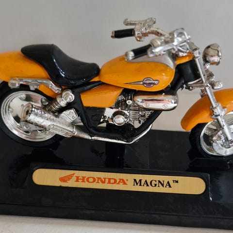 Hel og fin modell med god tyngde. Ikke ofte å se i gullfargen. Kr 1500.- + eventuelt frakt/embalasje. Ny Honda Repsol Caps "one size" følger med. Kun mot forskudd Vipps, eller hente.
