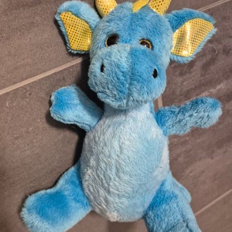 Blå Sparkle enhjørning ca 24 cm horn til hale