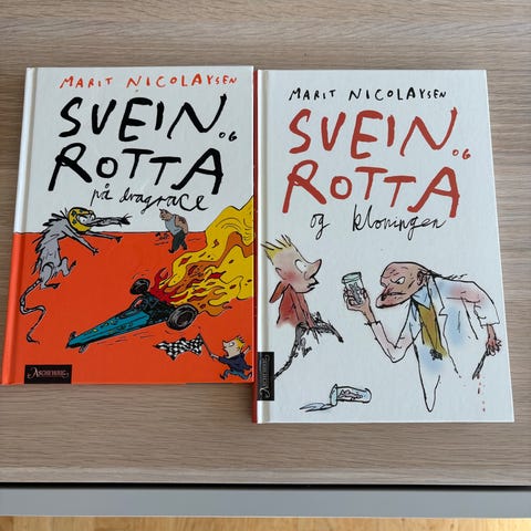 Marit Nicolaysen Svein og Rotta bok. Innbundet utgave med illustrasjoner. ISBN 978-82-03-25147-4. Tekst på norsk. Passer for lesere som er interessert i barnebøker eller lettleste bøker.