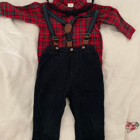 en pakke med ting til en gutt, bukser, en genser og et sett fra 62 til 74