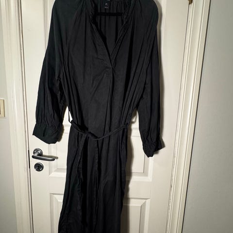 Sort langermet kjole i viskose, splitt på siden foran i knehøyde.