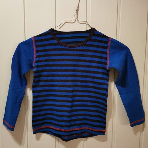 Genseren har lange ermer og rund hals med knappestolpe på skulderen for enklere påkledning. Materialet er bl.a. ull og egnet for barns daglige bruk.