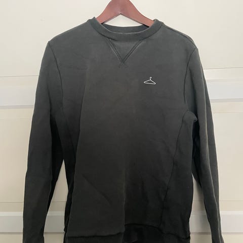Holzweiler L . Genseren er grønn og laget av 85% bomull og 15% polyester. Den har en hette og en frontlomme. Maskinvask anbefales med skånsom behandling, ikke bruk blekemiddel eller tørketrommel. Det er noen mindre flekker på plagget.