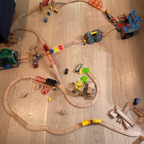 Togbane settet til gutten selges. Her er det kjøpt inn masse ekstra , tog og broer , ferje og annet se bilder. Kjøpt nytt samlet pris ca 4500kr