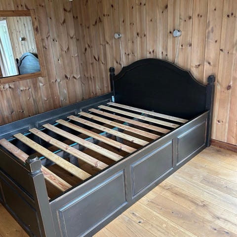Senge gavl spesial laget av Walløe og nilsen (tv 2 pusser opp) unilk og tidløs design. bredde 180 cm høyde 120cm selges. Ny pris var 10000kr. Selges grunnes plassmangel i ny bolig. Tidløs design. Må hentes
