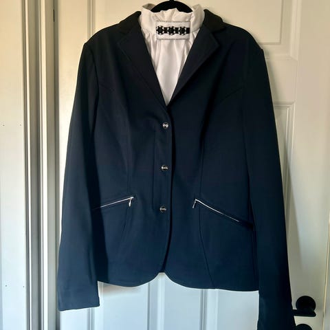 B Vertigo stevnejakke i størrelse 36, mørkeblå farge. Jakken har en veldig fin passform, og er kun brukt veldig pent på stevner.