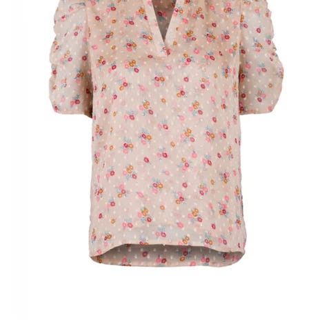 Neo Noir Bluse i størrelse m, beige farge. Blusen har en løs passform med 3/4-lange ermer og dekorative svarte sløyfer på baksiden. Materialet er glatt og gir et elegant uttrykk. Passer til ulike anledninger for kvinner.