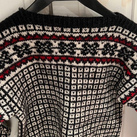 Pen hjemmestrikket genser selges ca str 4-6 år