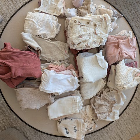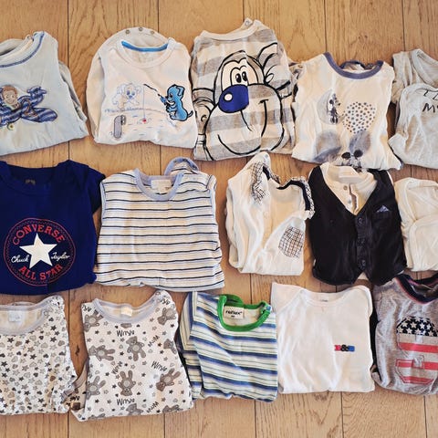 Kun flekker på den blå stripete buksa ellers ikke noen flekker som jeg har sett.