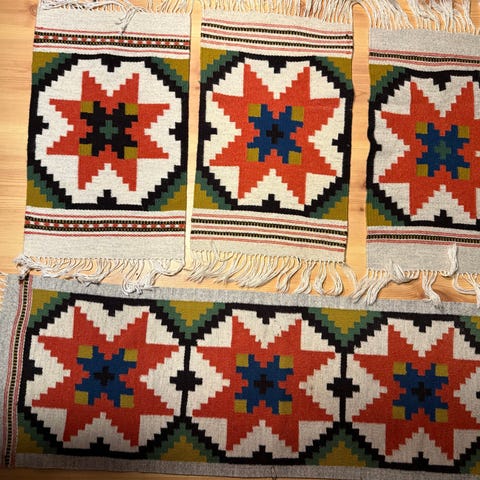 Like hel og fin til vegg. Vevd og broder med ulltråd